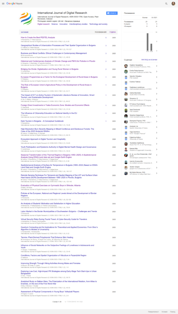 © 2025 International Journal of Digital Research | Publisher: Digital Research Lab Blagoevgrad | Registered by Bulgarian and EU legislation in the Trade Register of the Republic of Bulgaria under Tax Identification Number (Bulstat): 181324025.